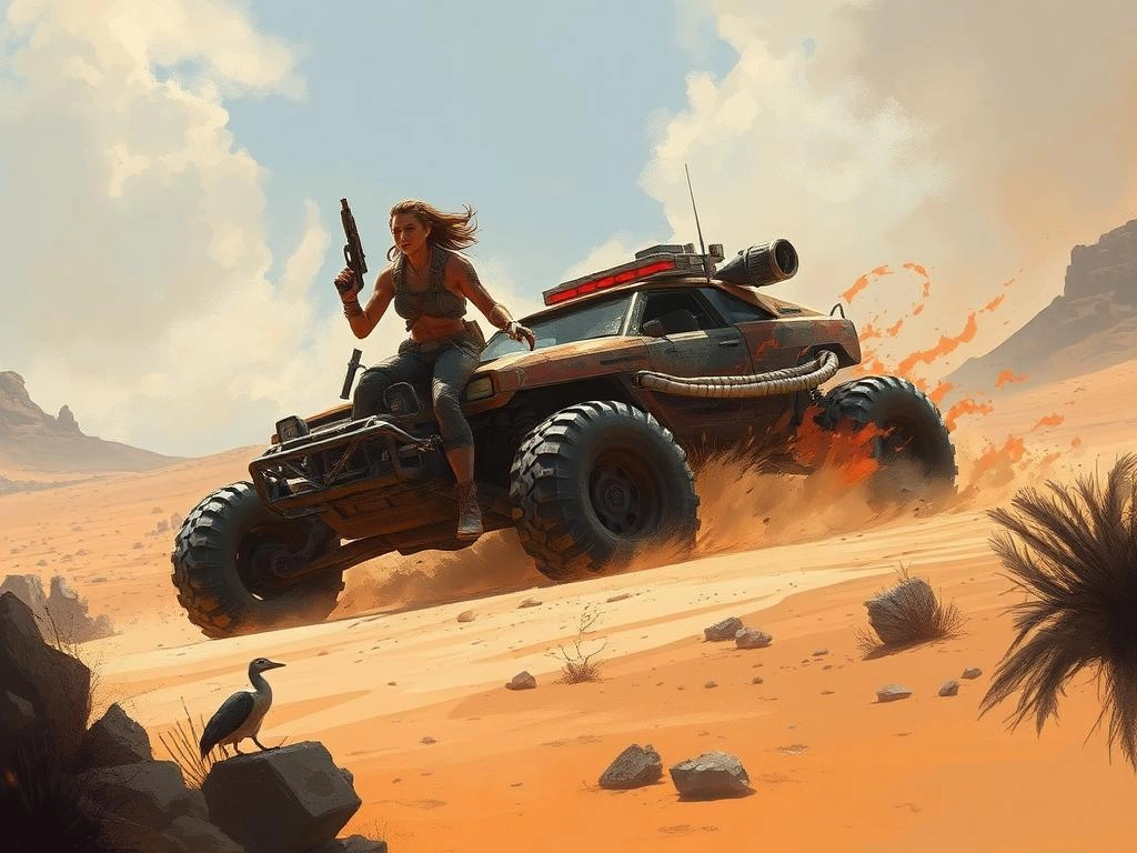 説明: ポストアポカリプスな世界観と、高速なカーアクションが特徴。砂漠の風景と暴力的な社会が描かれ、生存をかけた戦いがテーマ。